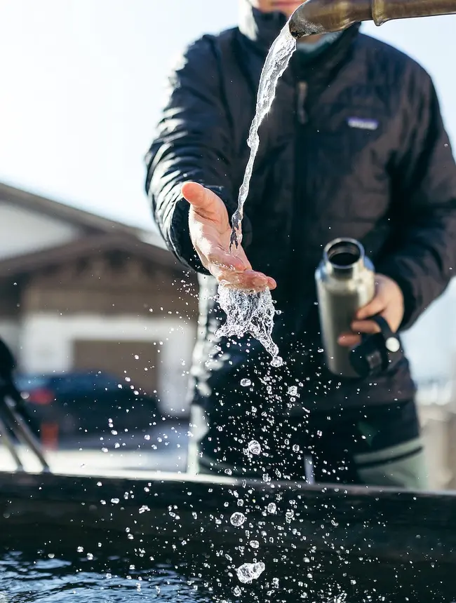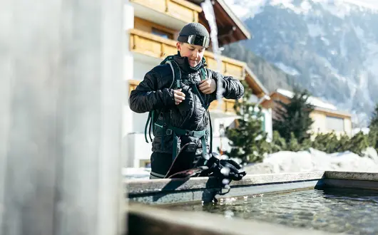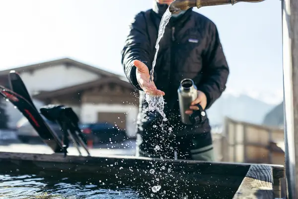 À la fontaine, dans les chambres, et même dans la piscine Gipfelbad, nous nageons dans l'eau de source de Niederthai.