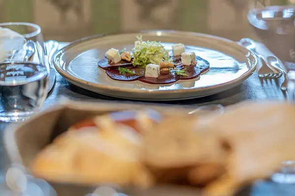 - Großzügiges Käsebrett mit verschiedenen Käsesorten aus der Region mit hausgemachten Chutneys.